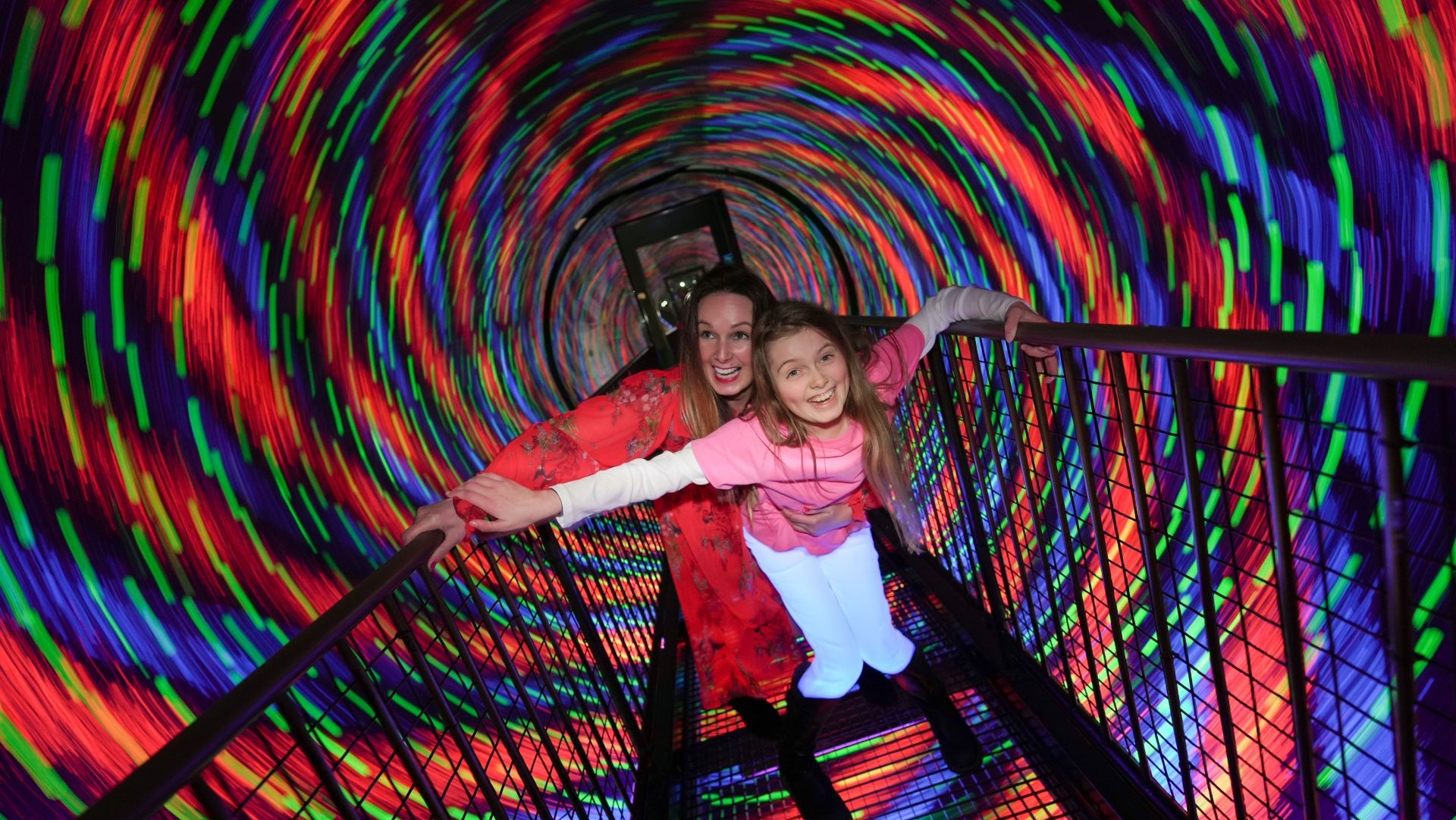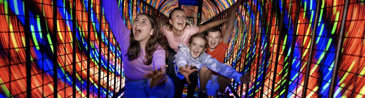 Start your journey with our brand-new Kaleido Tunnel, a fantastic array of light and reflections. Stand opposite someone and count how many versions of them you can see! Next up is a selection of holograms, an amazing set of unique, 3D images ready to come to life before your eyes. Step into a world of colour at our Colour Shadow Wall, to see yourself reflected into mutli colour. Are you a musical maestro? Beam out a song with our Light Harp, and see the notes light up as you tap out a tune.