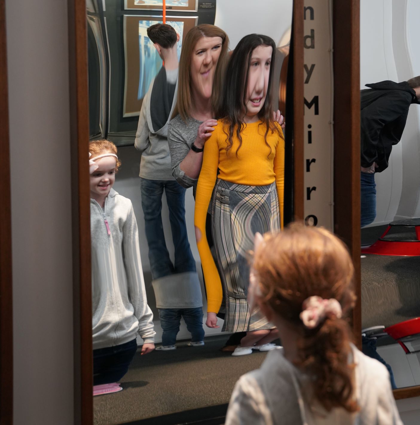 Explore classic optical illusions including maddening magic eye pictures and mind-bending mirrors. Become a 'big head' with the giant lens. Swap noses and heads with your friends, or shake hands with yourself. Don't miss the Shadow Wall, which captures your shadow in a flash!
