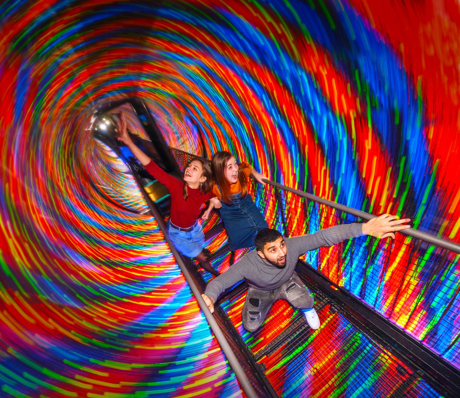 Lose yourself in our magical Mirror Maze, a bamboozling jumble of hallways that seemingly stretch for miles. Will you make it to the other side? Get ready for a mystifying, turning, tilting, twisting, crazy experience like no other! The Vortex Tunnel is a highlight of any visit. This discombobulating spinning tunnel will confuse and baffle all ages. Can you walk through without losing your balance?